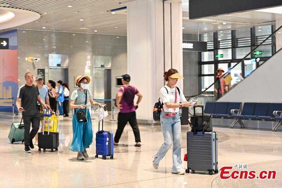 Tourists head for Guangzhou's Nansha International Cruise Homeport on June 25. (Photo: China News Service/Chen Jimin)