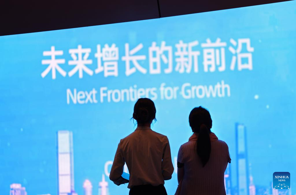 Participants listen to a speaker during the 15th Annual Meeting of the New Champions, also known as the Summer Davos, at the Dalian International Conference Center in Dalian, northeast China's Liaoning Province, June 25, 2024. Featuring the theme "Next Frontiers for Growth," the event, held from June 25 to 27, gathers over 1,700 leading figures from the public and private sectors in more than 100 countries and regions to jointly explore new drivers and pathways for global economic growth. (Xinhua/Yao Jianfeng)