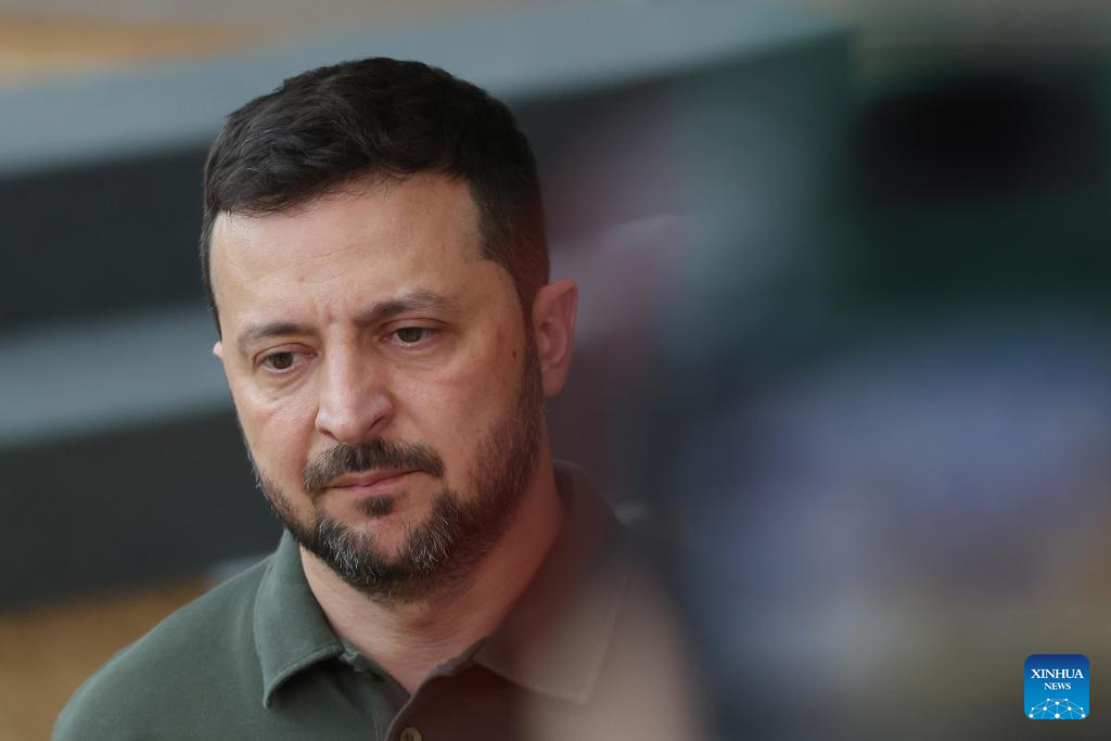 Ukrainian President Volodymyr Zelensky is seen before a European Council summit in Brussels, Belgium, June 27, 2024. (Xinhua/Zhao Dingzhe)