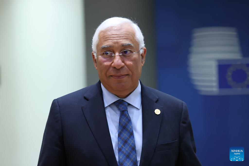 File photo taken on Feb. 1, 2024 shows Portuguese Prime Minister Antonio Costa attending the EU special summit in Brussels, Belgium. The European Council summit agreed on Thursday to formally nominate Germany's Ursula von der Leyen for a second term as president of the European Commission. European Council President Charles Michel confirmed the nomination on social media platform X. In addition to von der Leyen's nomination, EU leaders agreed to elect former Portuguese Prime Minister Antonio Costa as President of the European Council, while nominating Estonian Prime Minister Kaja Kallas as the EU's foreign policy chief. (Xinhua/Zhao Dingzhe)