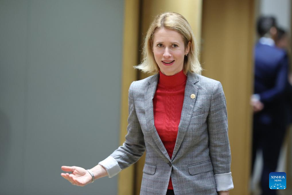 File photo taken on Feb. 1, 2024 shows Estonian Prime Minister Kaja Kallas attending the EU special summit in Brussels, Belgium. The European Council summit agreed on Thursday to formally nominate Germany's Ursula von der Leyen for a second term as president of the European Commission. European Council President Charles Michel confirmed the nomination on social media platform X. In addition to von der Leyen's nomination, EU leaders agreed to elect former Portuguese Prime Minister Antonio Costa as President of the European Council, while nominating Estonian Prime Minister Kaja Kallas as the EU's foreign policy chief. (Xinhua/Zhao Dingzhe)