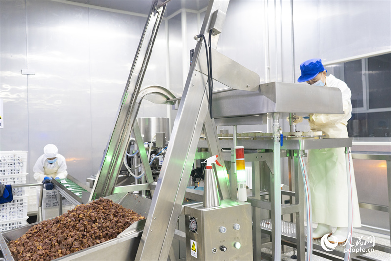 Photo shows a braised beef processing workshop which uses Xinjiang brown cattle as its primary ingredient. (People's Daily Online/Chen Xinhui)
