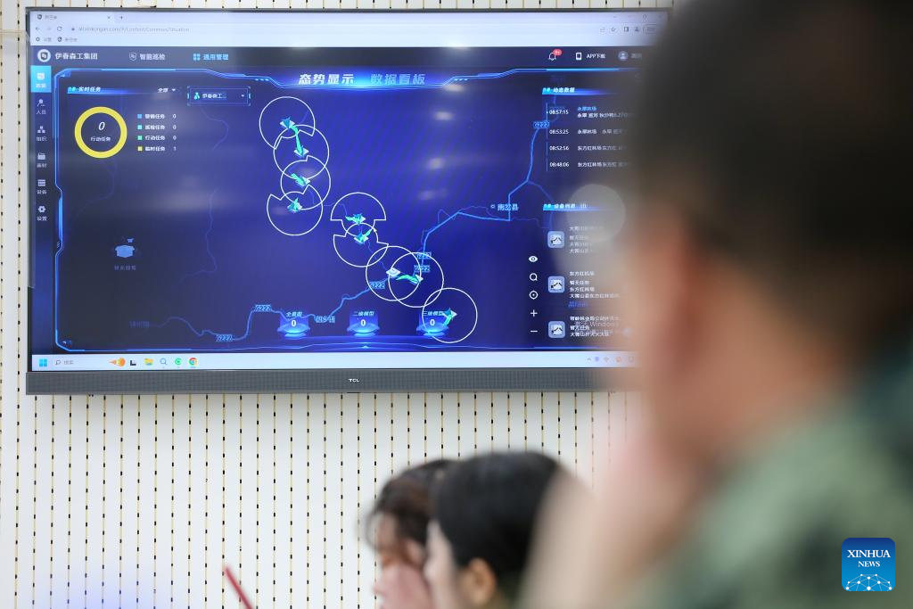 This photo taken on June 27, 2024 shows the real-time distribution map of drones for forest patrolling at the control room of Dailing forestry bureau in Yichun, northeast China's Heilongjiang Province. Recently, the Dailing forestry bureau has integrated advanced technology to enhance forestry management. By deploying drones, the bureau has achieved intelligent and automated forest patrolling, significantly reducing disaster risks and improving patrol efficiency. (Xinhua/Wang Yiliang)