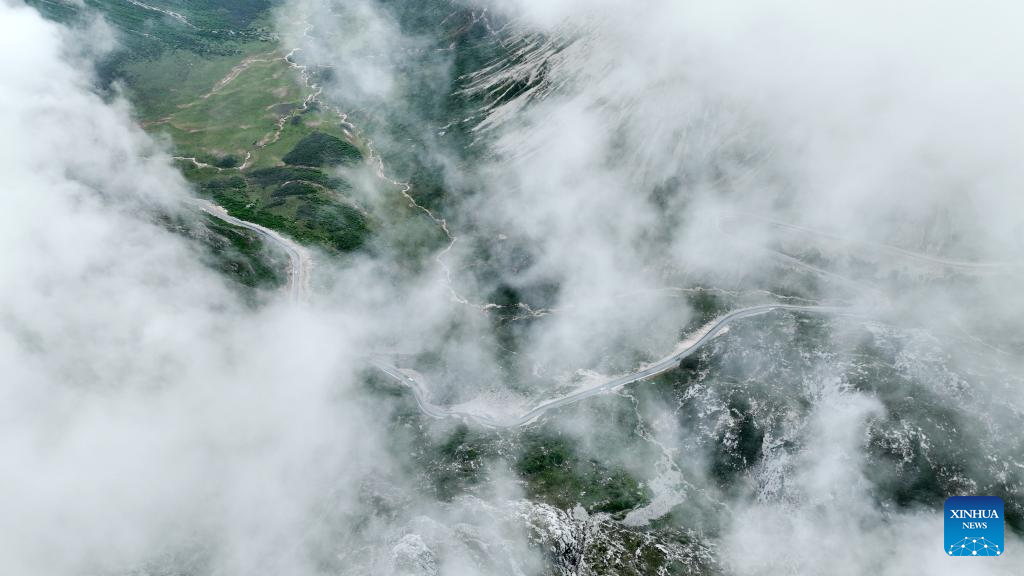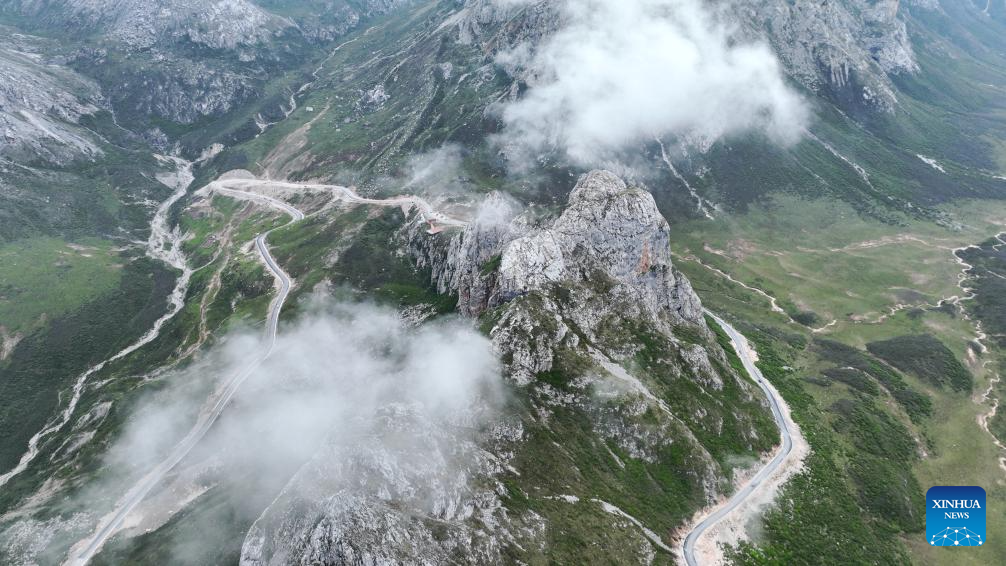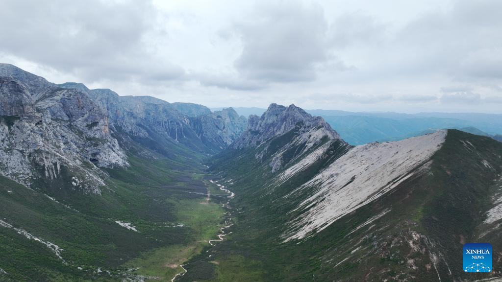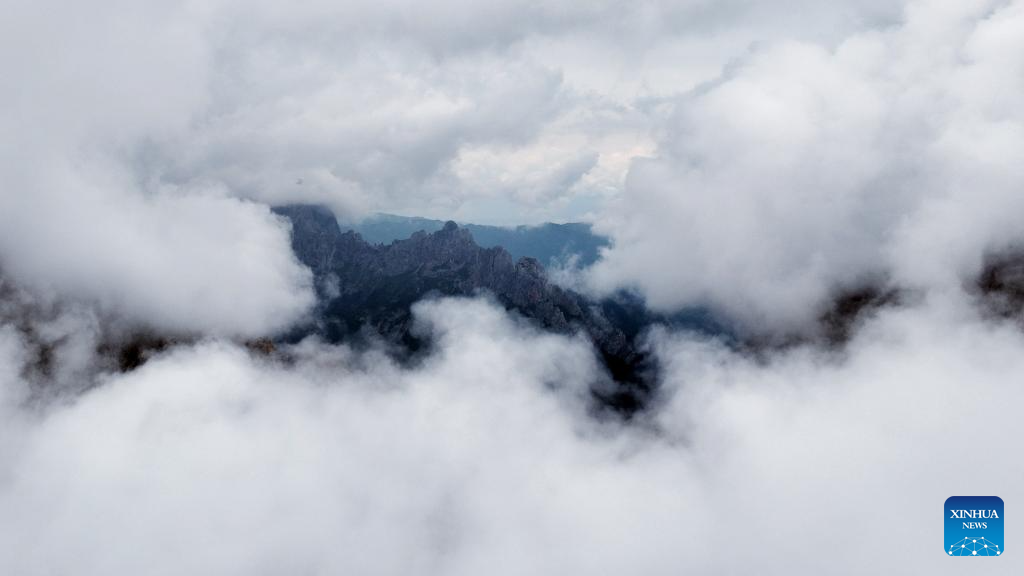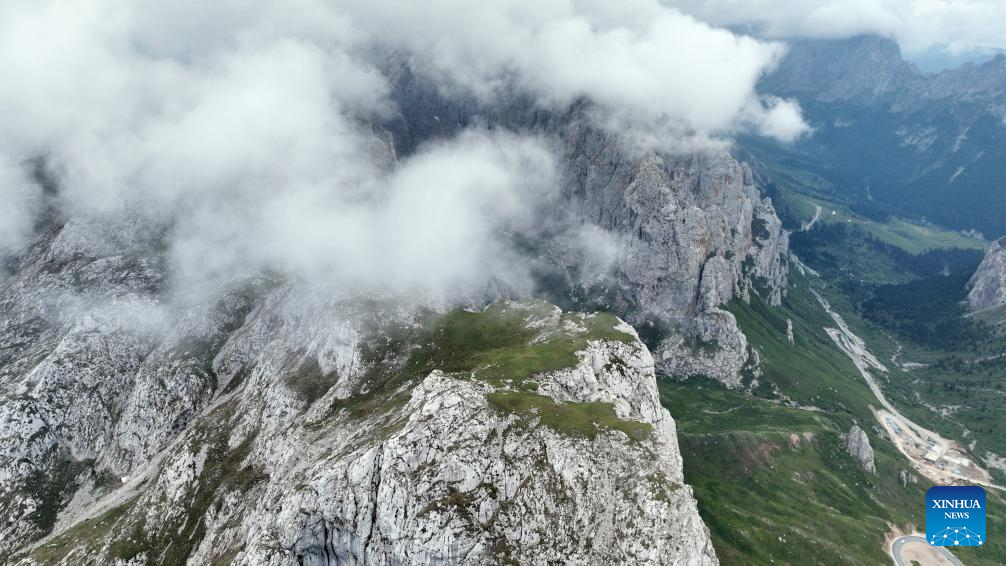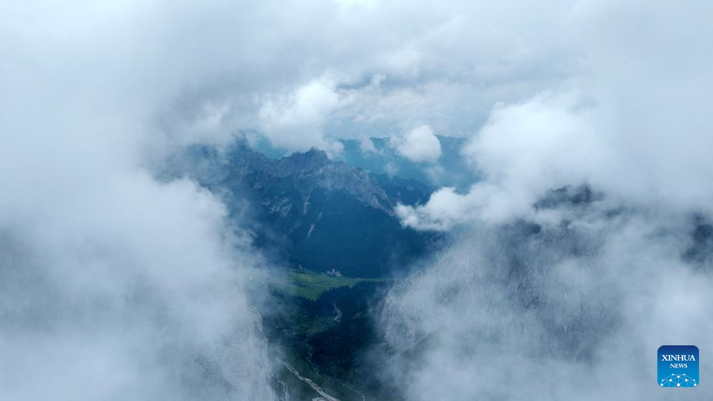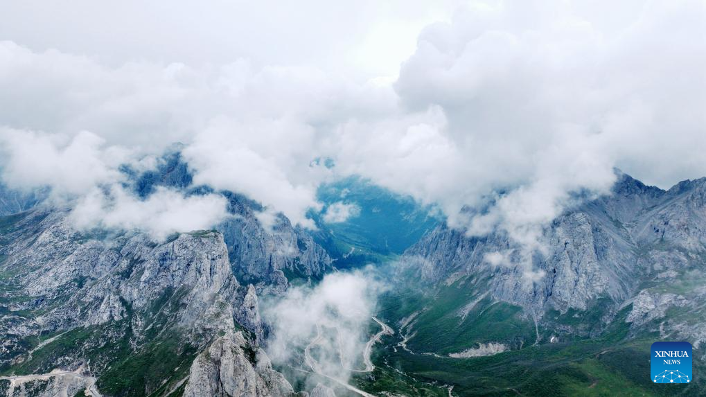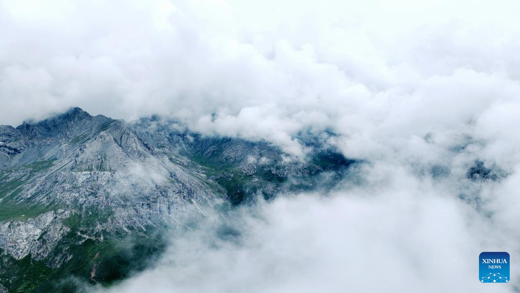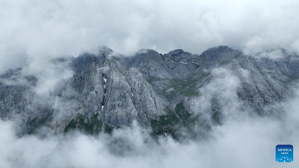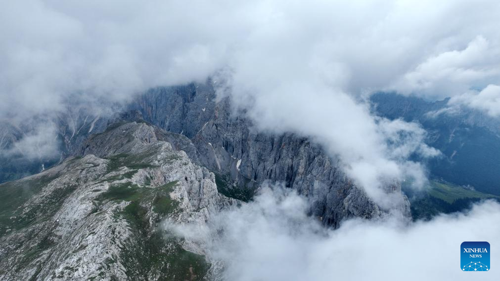 An aerial drone photo taken on June 27, 2024 shows the Guanggai Mountain in Gannan Tibetan Autonomous Prefecture of northwest China's Gansu Province. (Xinhua/Chen Bin)