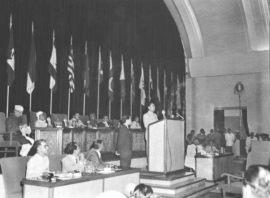Photo shows Zhou Enlai heads a delegation to attend the first Asia Africa conference in Bandung in Indonesia in April 1955. Xinhua (Feb.11, 1998)