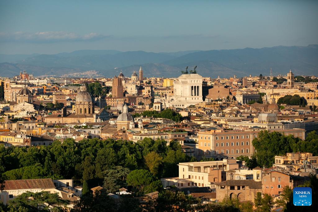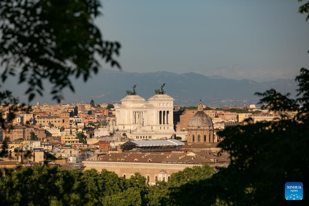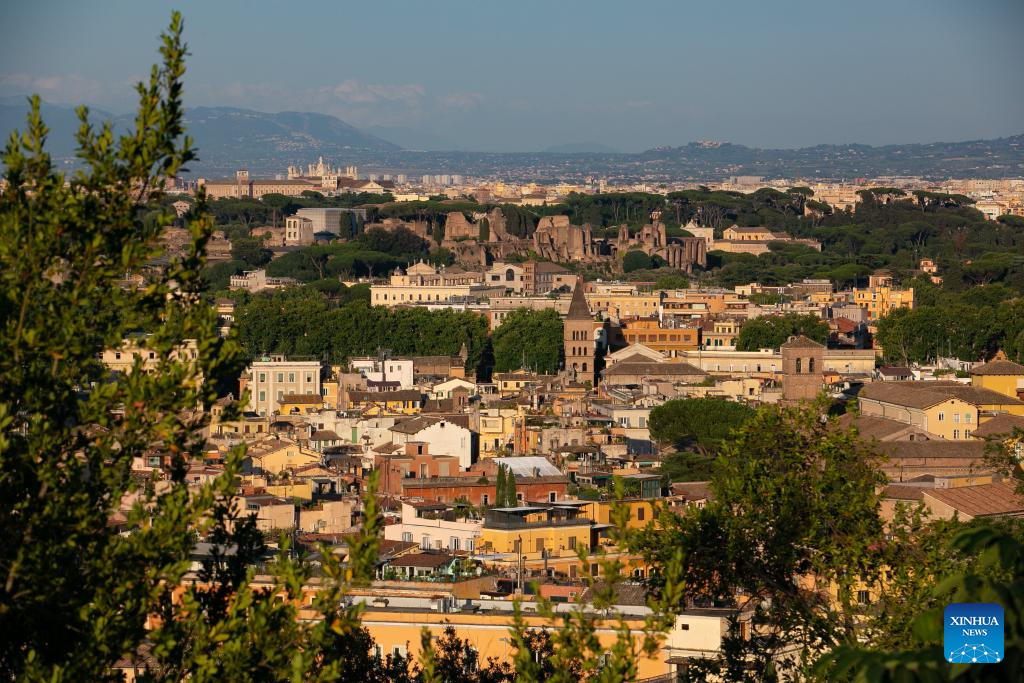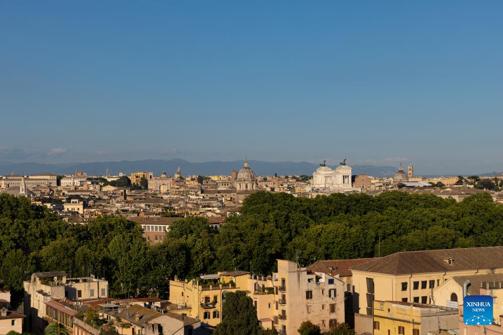 This photo taken on June 27, 2024 shows a scenery at sunset in Rome, Italy. (Xinhua/Li Jing)