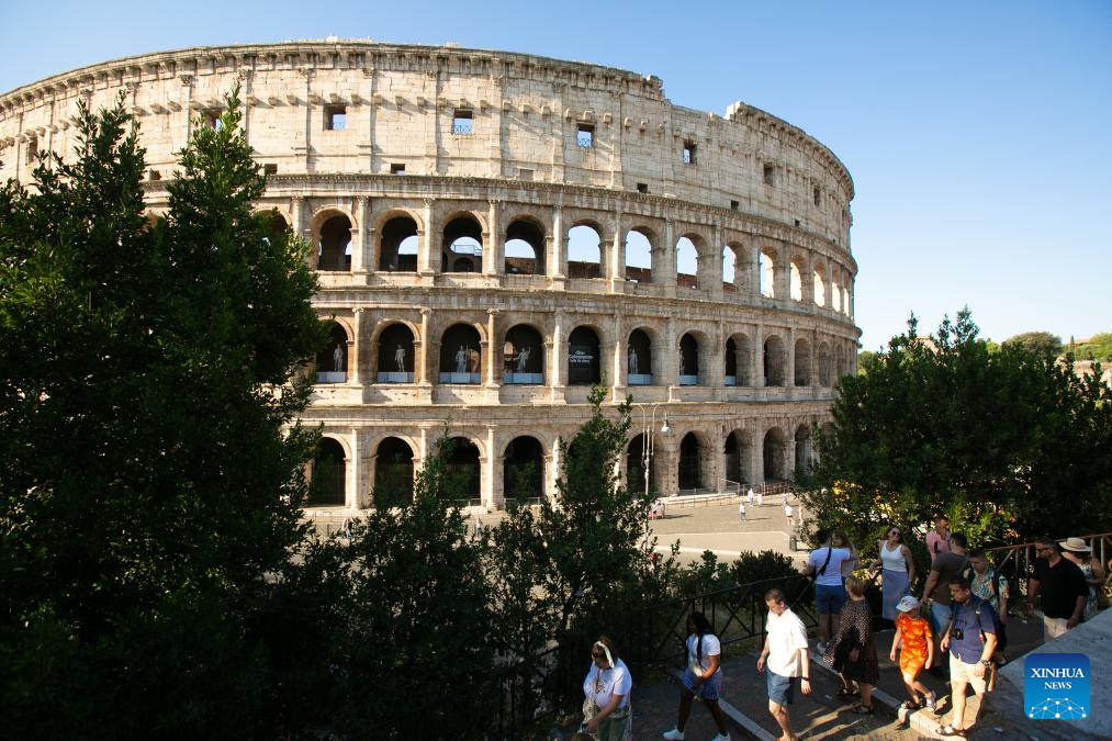 People walk past the Colosseum in Rome, Italy, June 28, 2024. (Xinhua/Li Jing)