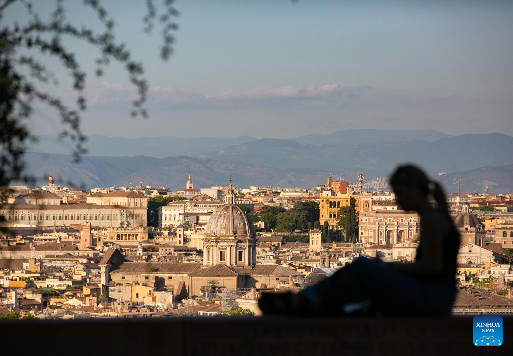 A woman rests at Belvedere del Gianicolo in Rome, Italy, June 27, 2024. (Xinhua/Li Jing)