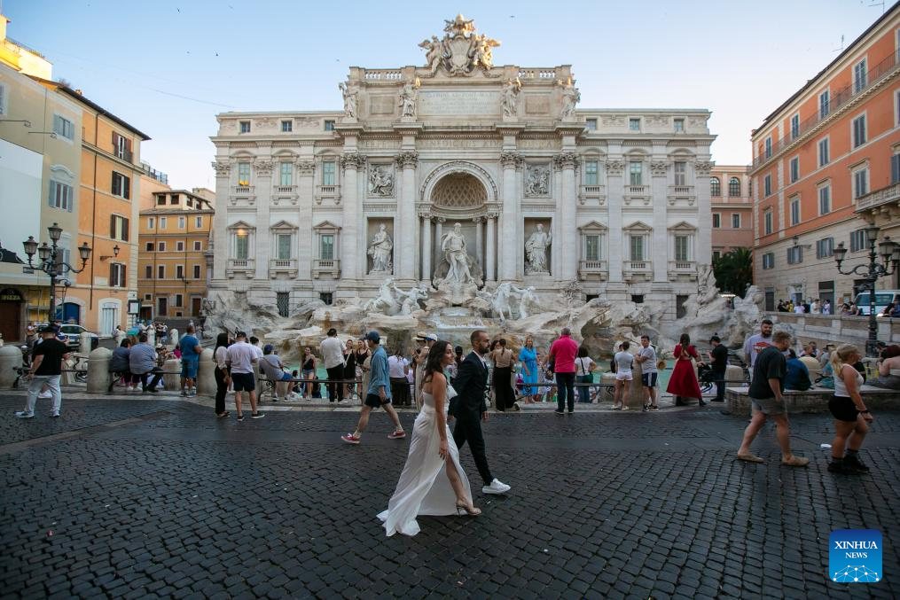 People visit the Trevi Fountain in Rome, Italy, June 28, 2024. (Xinhua/Li Jing)