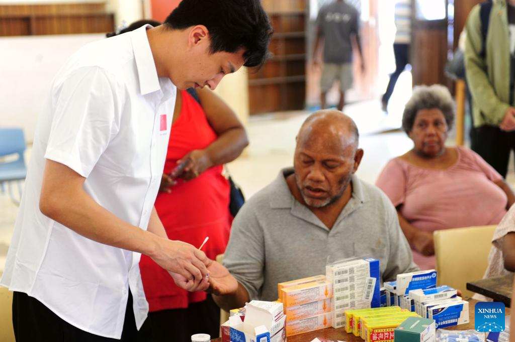 Members of the third Chinese medical team to Solomon Islands offer health consultations to local residents in Honiara, Solomon Islands, June 28, 2024. After the establishment of bilateral diplomatic relations in 2019, China started to dispatch medical team including doctors and nurses to the Solomon Islands in early 2022. (Xinhua/Zhang Jianhua)