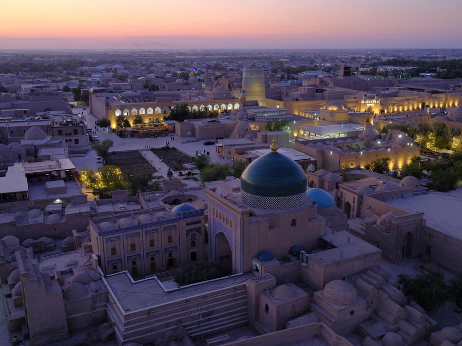 This photo taken on Sept. 21, 2023 shows the historical sites in the ancient city of Khiva, Uzbekistan. (Xinhua/Li Muzi)
