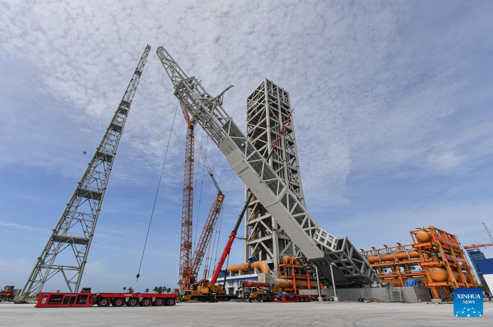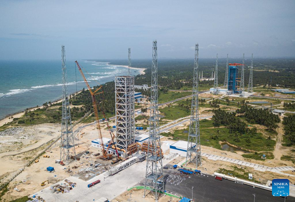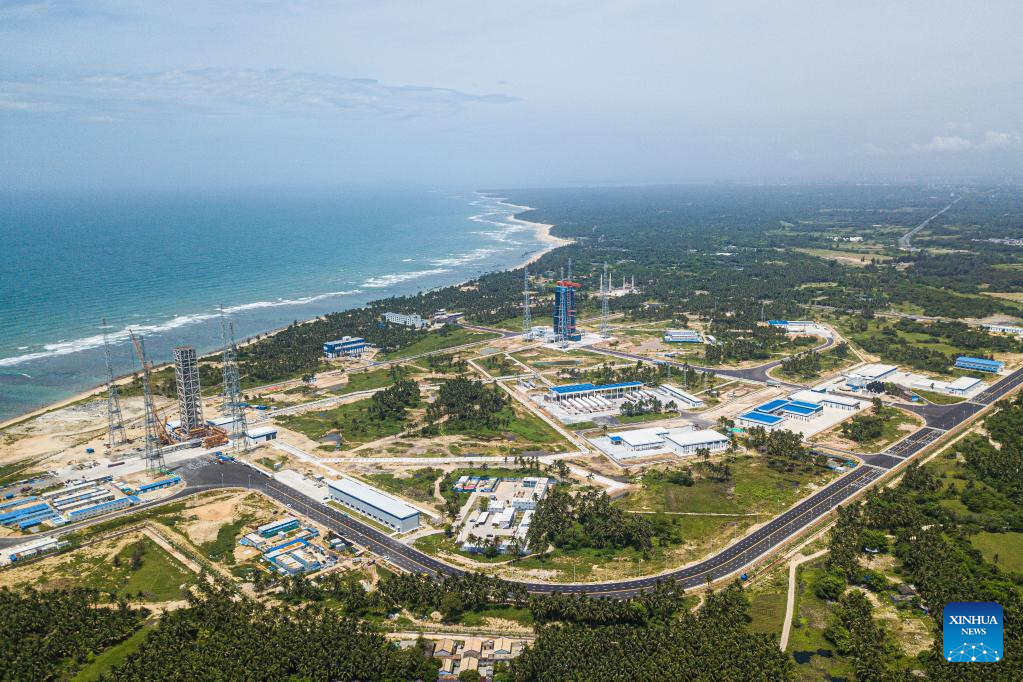 An aerial drone photo taken on June 30, 2024 shows a view of the commercial spacecraft launch site in south China's Hainan Province. China's first commercial spacecraft launch site is ready for operations in south China's Hainan Province as of Sunday, having completed a rocket launch simulation rehearsal using its two launch pads. (Xinhua/Pu Xiaoxu)