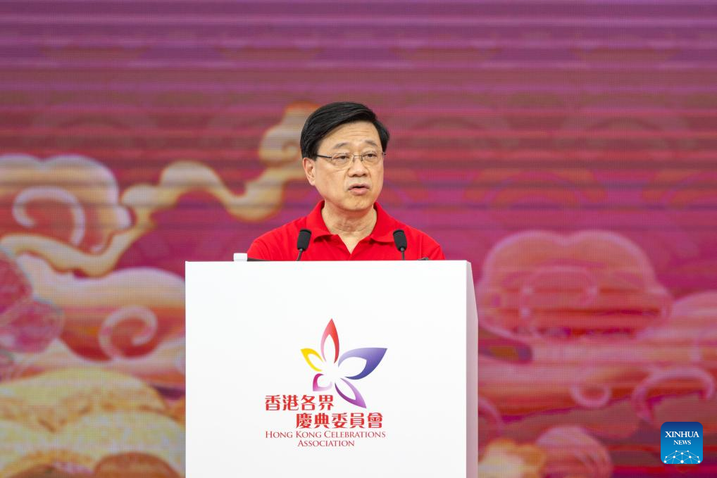 John Lee, chief executive of the Hong Kong Special Administrative Region, speaks at a launching ceremony marking the 27th anniversary of Hong Kong's return to the motherland in Hong Kong, south China, June 29, 2024. (Xinhua/Zhu Wei)