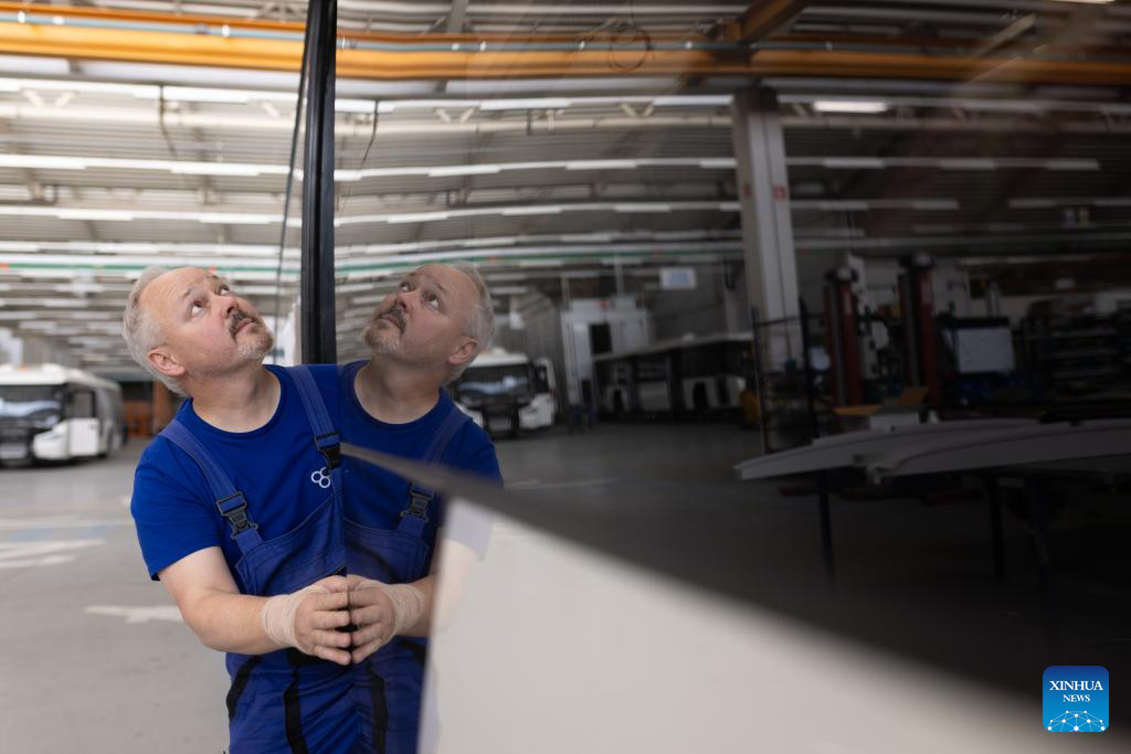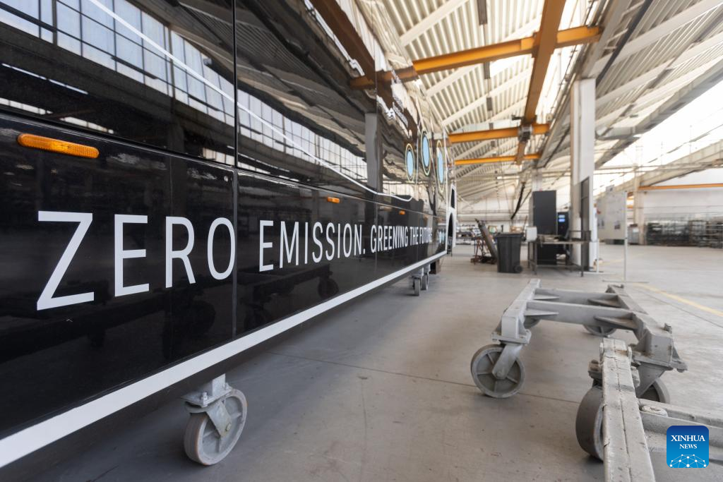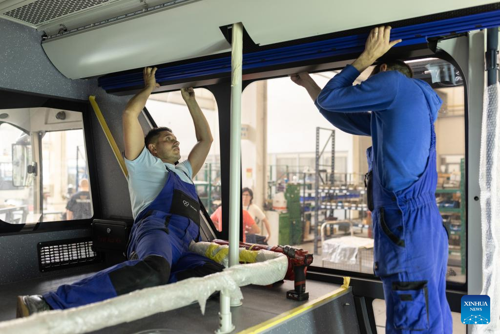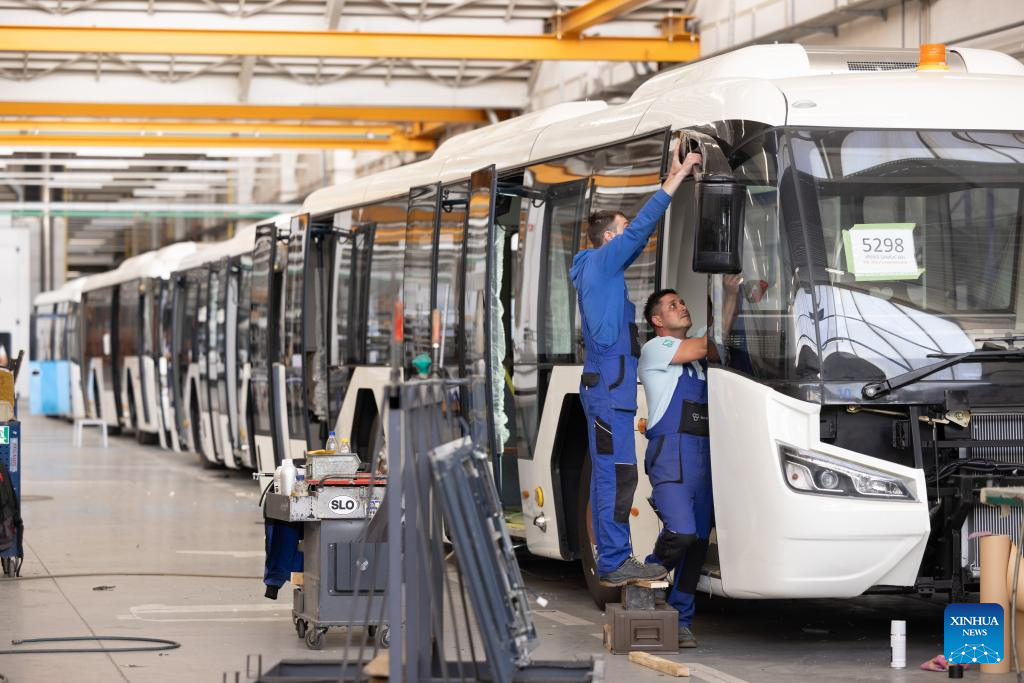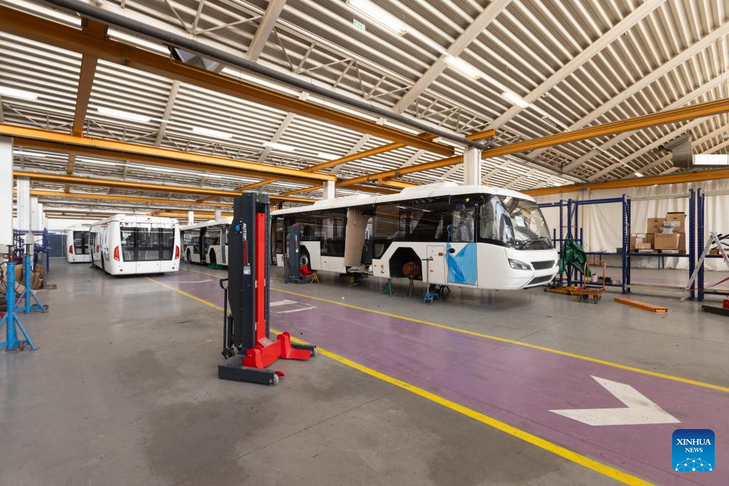 TAM's production line of electric buses for the needs of the Paris Charles de Gaulle Airport is pictured in Maribor, Slovenia, on June 14, 2024. TAM, a leading bus and commercial vehicle producer in Slovenia, is experiencing a significant revival after its acquisition by China. From bankruptcy following years of decline, the company is once again thriving on the European market. (Photo by Zeljko Stevanic/Xinhua)