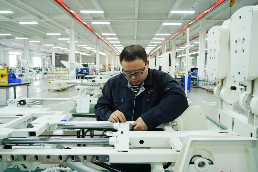 A technician makes rehabilitation robots at Gaomi Park of Weifang High-Tech Industry Development Zone in Gaomi, east China's Shandong Province, April 17, 2024. (Xinhua/Zhu Zheng)