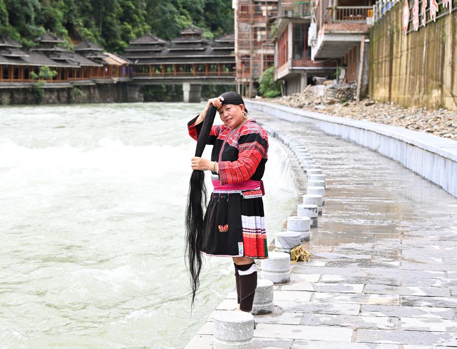 LONGSHENG, July 1 (Xinhua) -- Huangluo Village of Longsheng County in south China's Guangxi Zhuang Autonomous Region is famous for the dramatically long hair worn by its women of the Yao ethnic group.