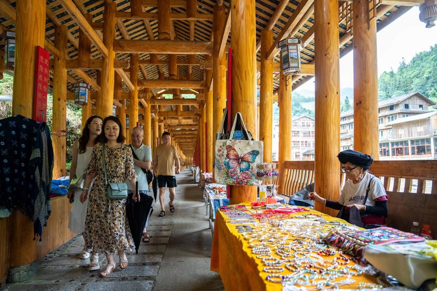 Tourists visit Huangluo Village of Longsheng County, south China's Guangxi Zhuang Autonomous Region, June 26, 2024. (Xinhua/Yang Zhisen)