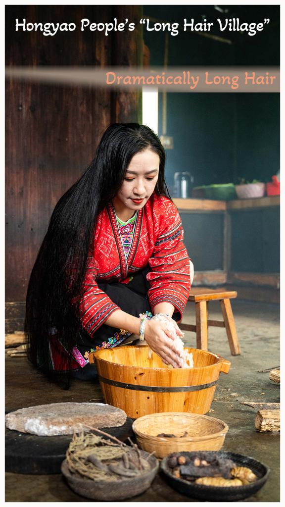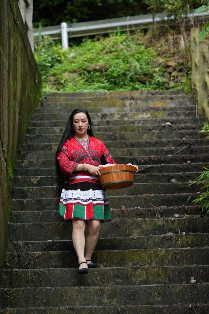 Local resident Pan Fengfei prepares rice water for hair washing at home in Huangluo Village of Longsheng County, south China's Guangxi Zhuang Autonomous Region, June 26, 2024. (Xinhua/Yang Zhisen)