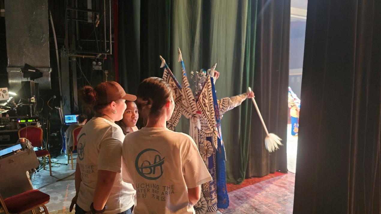 Two British students and a local student watch a performance of Yueju opera at Guangzhou Jiangnan Theater in Guangzhou, south China's Guangdong Province, July 1, 2024. (Photo provided to People's Daily Online)