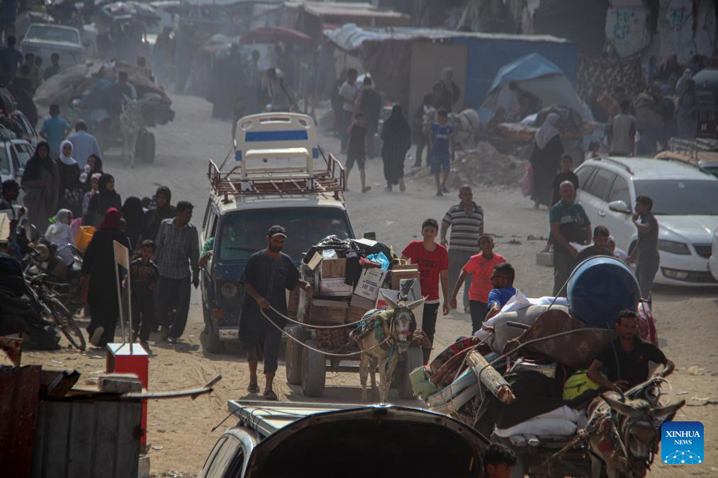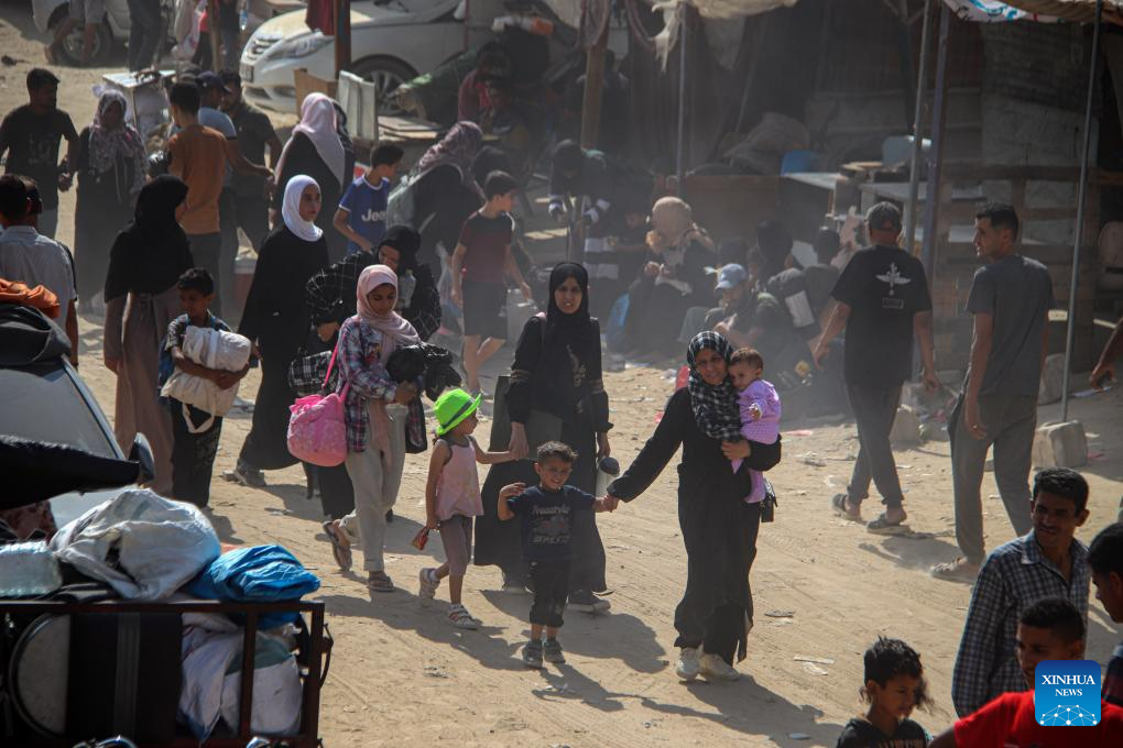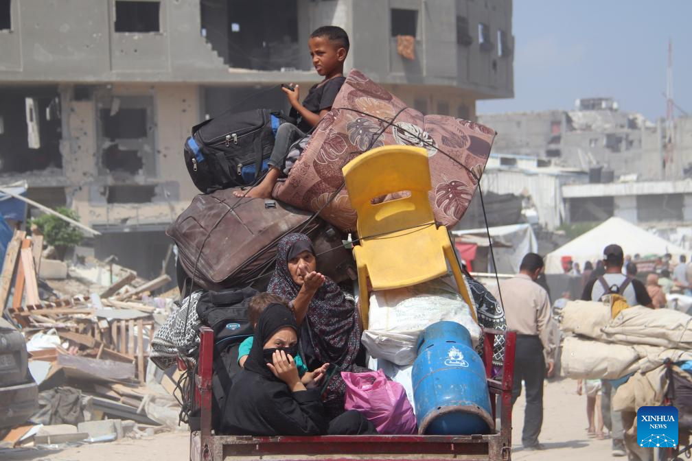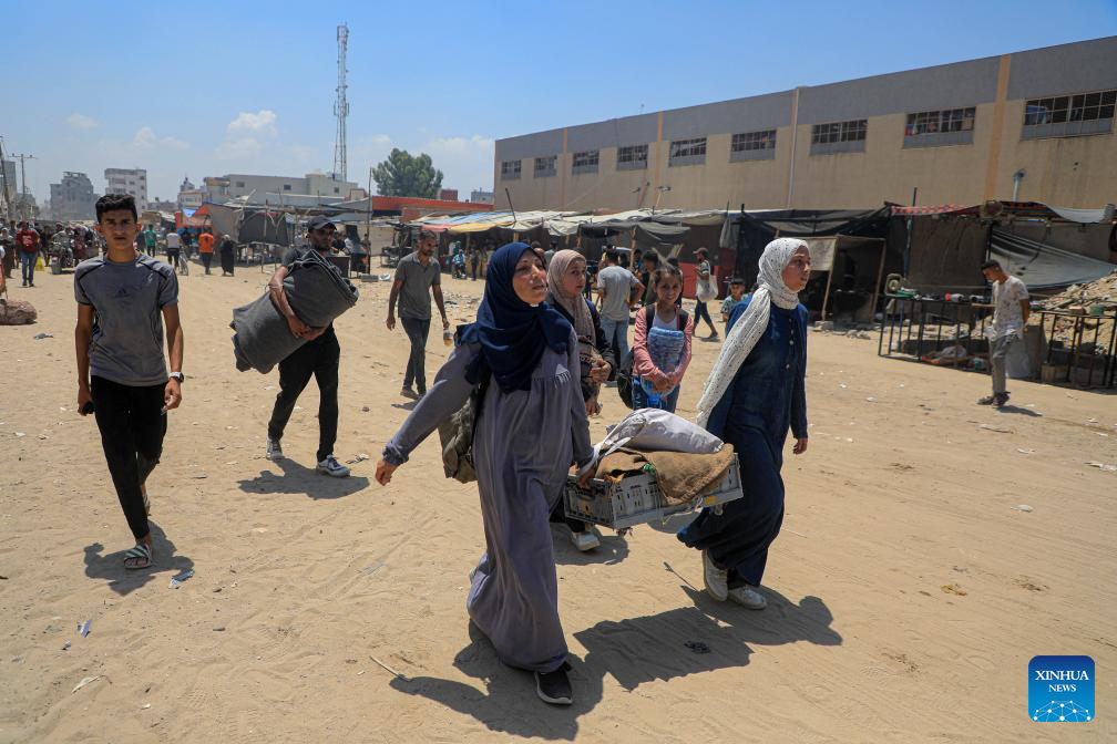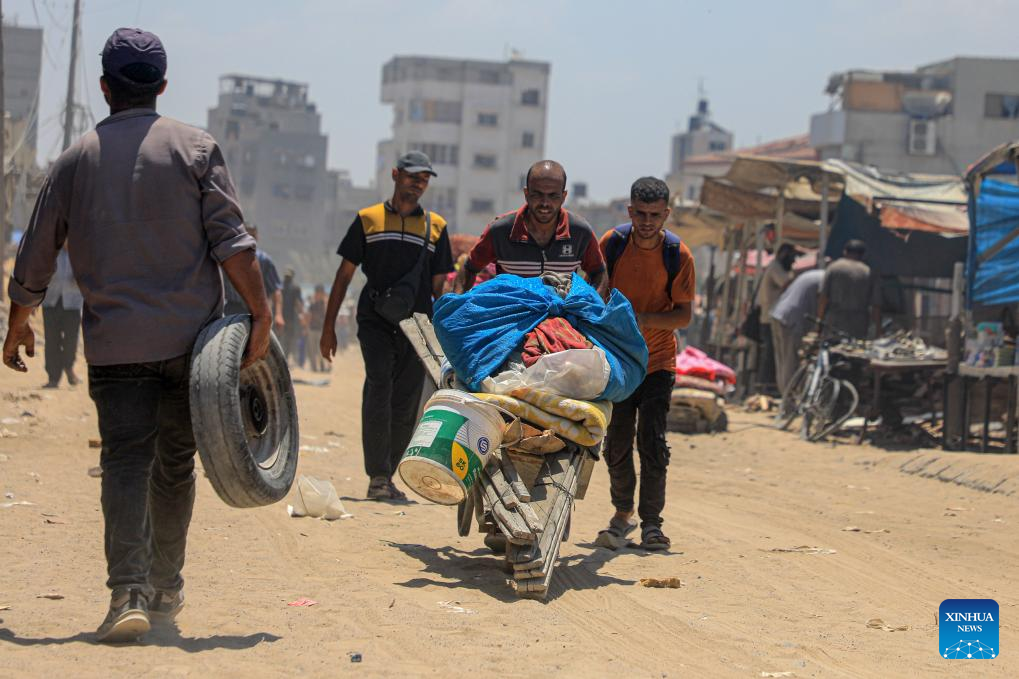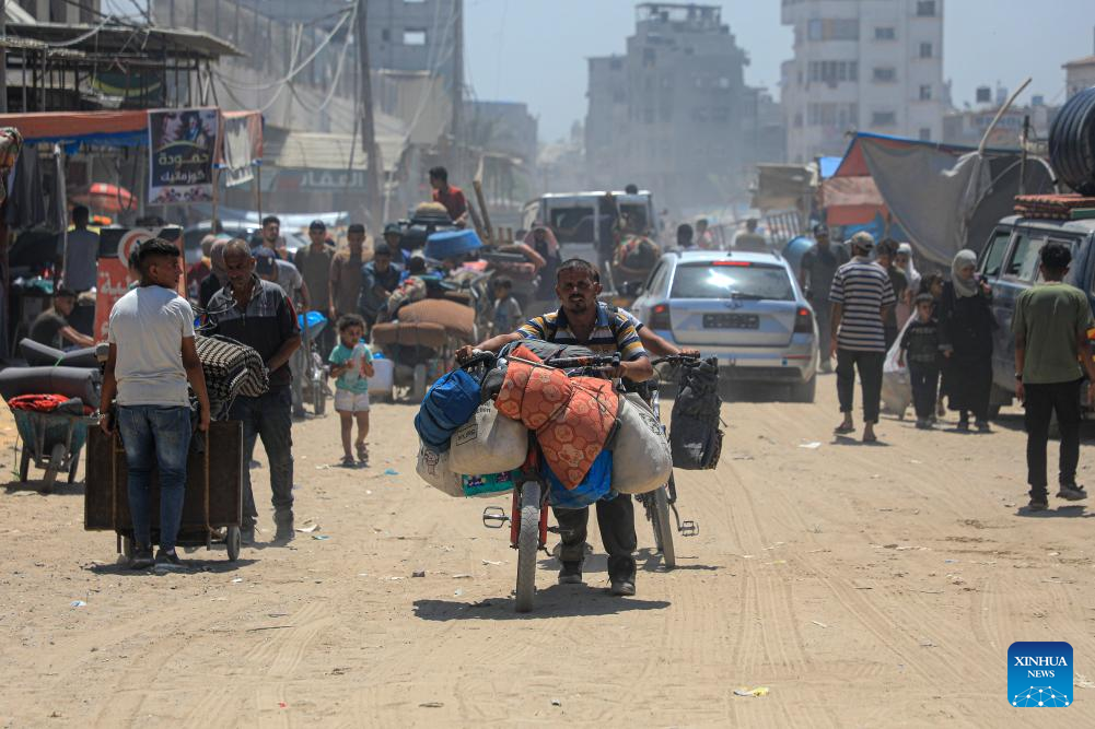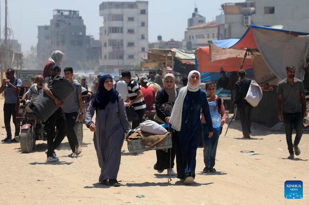 Palestinian people flee from the eastern areas of Khan Younis in southern Gaza Strip, on July 2, 2024. (Photo by Rizek Abdeljawad/Xinhua)