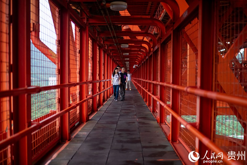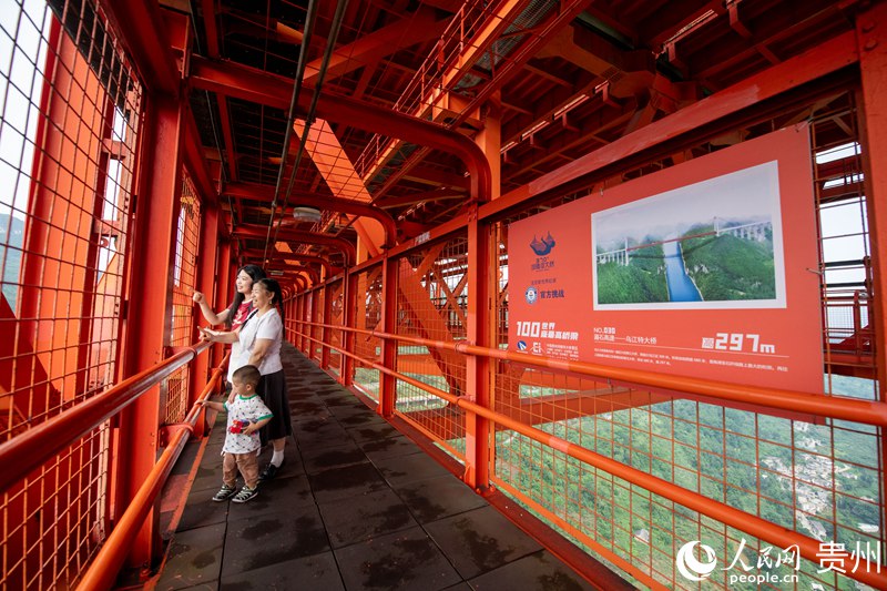 Tourists explore the interior of the Baling River Bridge in southwest China's Guizhou Province. (People's Daily Online/Weng Qiyu)