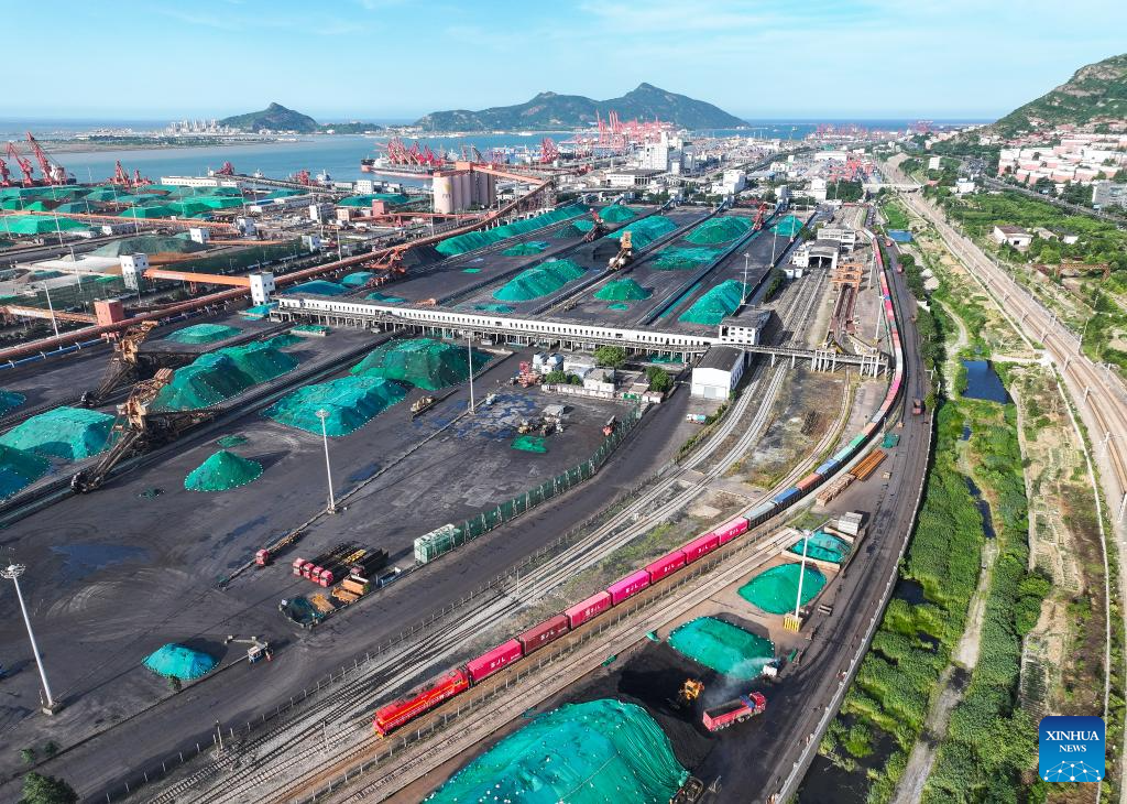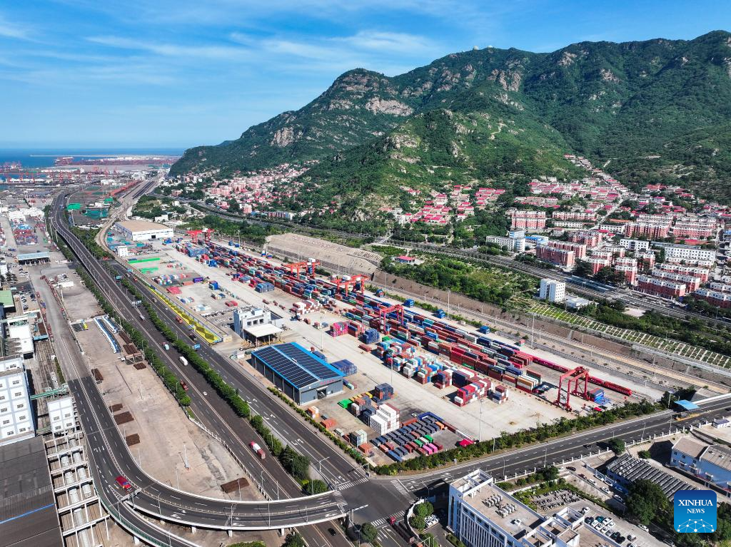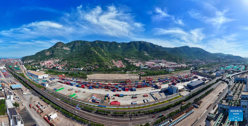 A drone photo taken on June 26, 2024 shows a view of the China-Kazakhstan (Lianyungang) Logistics Cooperation Base in Lianyungang, east China's Jiangsu Province. (Xinhua/Ji Chunpeng)