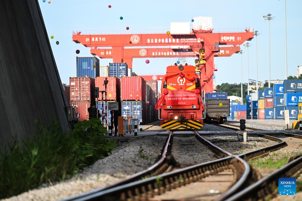 An international freight train pulls out of the China-Kazakhstan (Lianyungang) Logistics Cooperation Base in Lianyungang, east China's Jiangsu Province on June 26, 2024. (Xinhua/Ji Chunpeng)