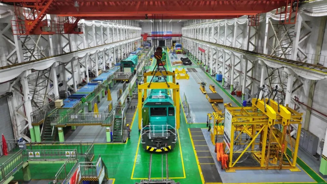 A 1,000 kW new energy locomotive is assembled in a workshop of CRRC Ziyang Co., Ltd. in southwest China's Sichuan province. (Photo from the public account of CRRC on WeChat)