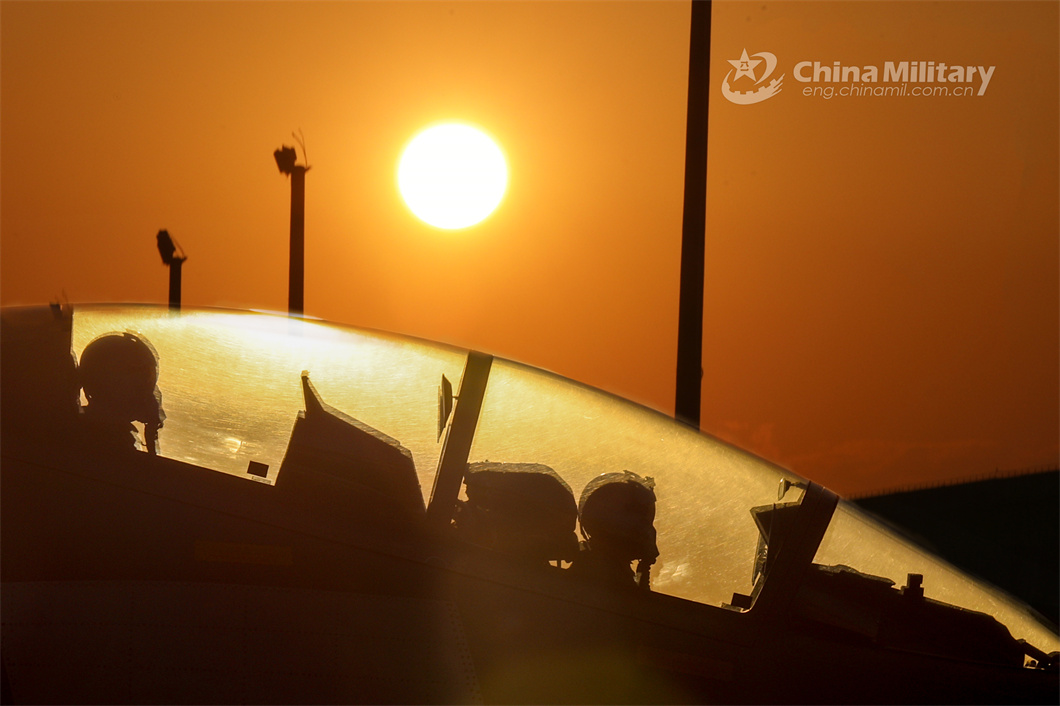 Pilots assigned to an aviation unit with the air force under the PLA Eastern Theater Command get well-prepared in the cockpit of their fight jet before takeoff during a night flight training exercise on June 10, 2024. (eng.chinamil.com.cn/Photo by Li Kai)