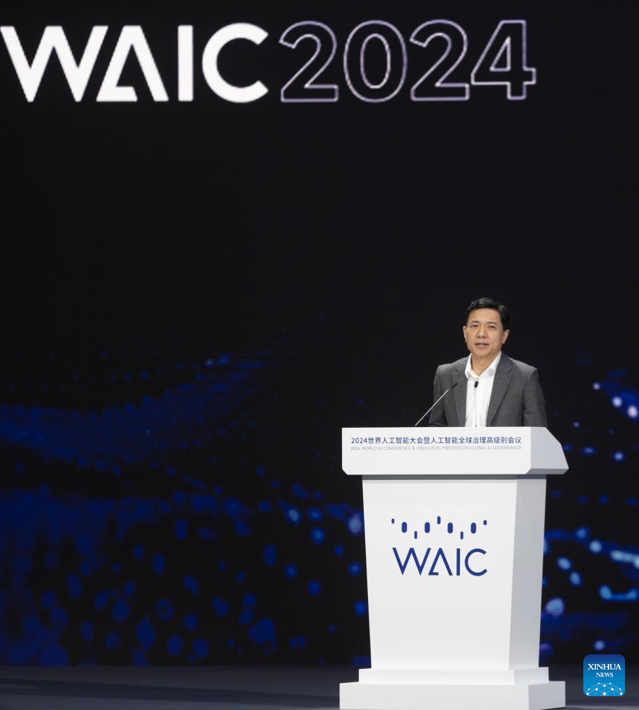 Li Yanhong, chairman and CEO of Baidu, delivers a speech at a main forum of the 2024 World AI Conference in Shanghai, east China, July 4, 2024. (Xinhua/Wang Xiang)