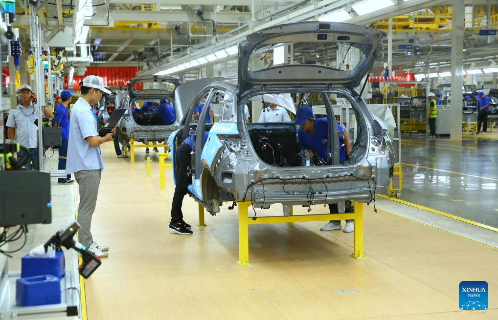 Workers operate at an assembly line of BYD's new plant in Rayong province, Thailand on July 4, 2024. (Xinhua/Sun Weitong)