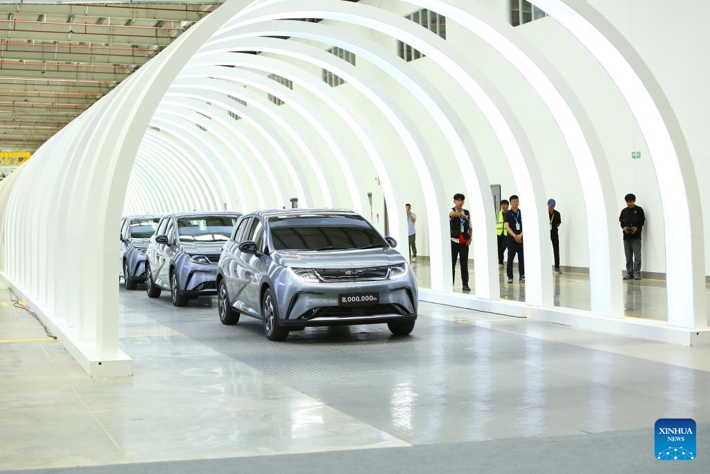 RAYONG, Thailand, July 4 (Xinhua) -- China's carmaker BYD opened its Thailand plant on Thursday, as its 8 millionth new energy vehicle (NEV) rolled off the assembly line in the factory, marking a milestone in the company's overseas expansion.