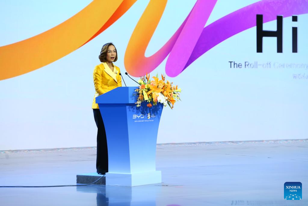 Thailand's Minister of Industry Pimphattra Wichaikul addresses the inauguration ceremony of BYD's new plant in Rayong province, Thailand on July 4, 2024. (Xinhua/Sun Weitong)