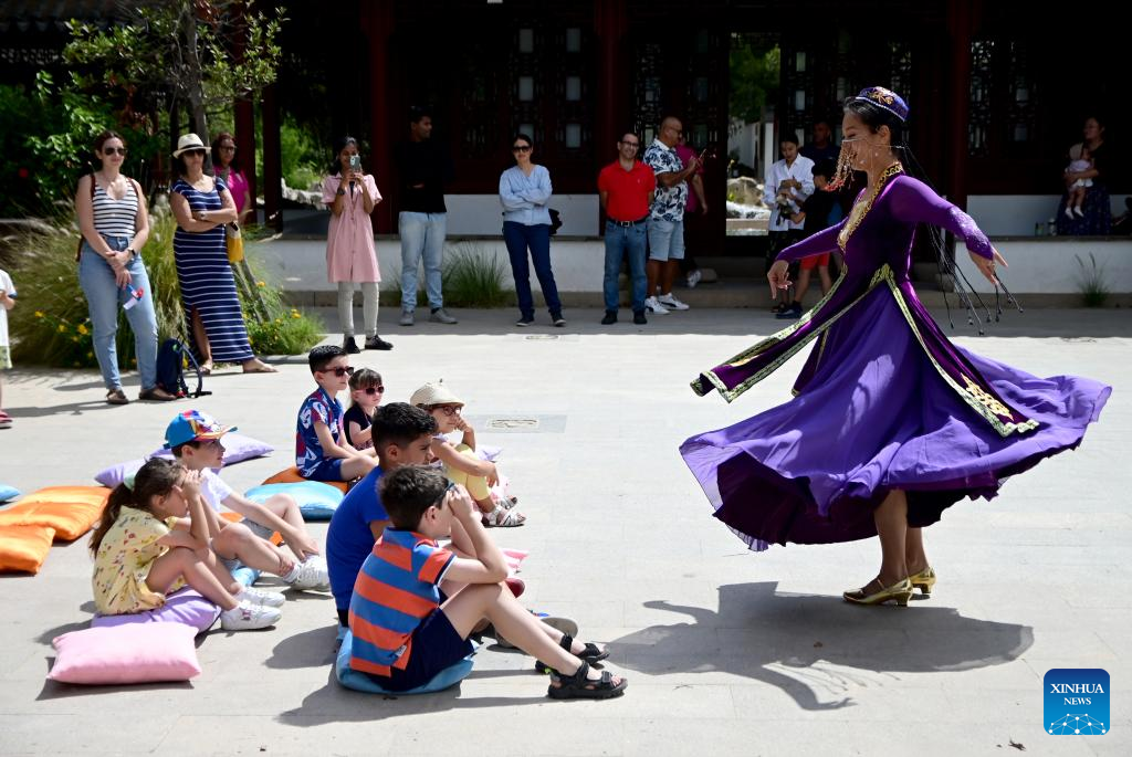 People view Chinese dance at the Chinese Garden of Serenity in Santa Lucija, Malta, on July 4, 2024. Maltese people of all ages immersed themselves in traditional Chinese culture at an event on Thursday at the Chinese Garden of Serenity in Santa Lucija. (Photo by Jonathan Borg/Xinhua)