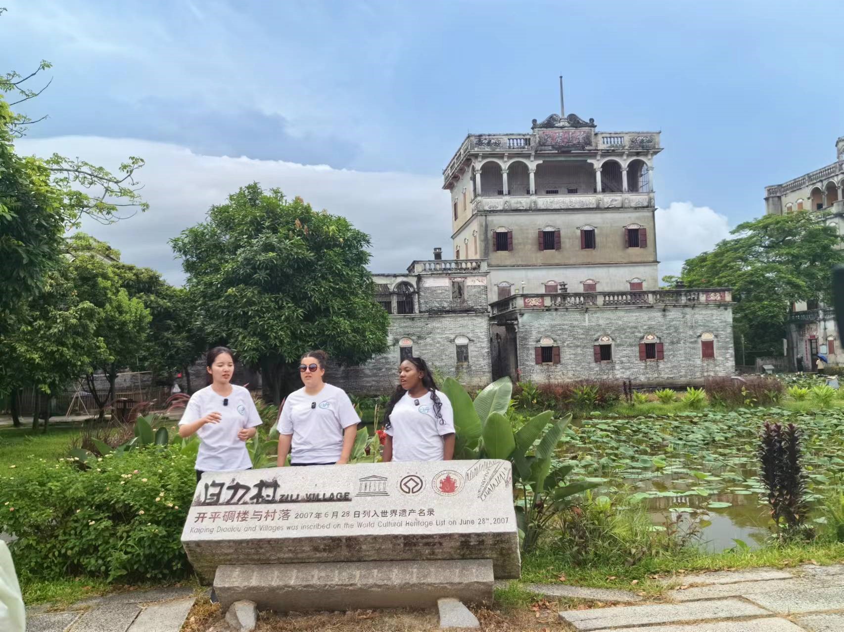British students and a local student visit the Kaiping Diaolou and Villages in Kaiping, south China's Guangdong Province, July 3, 2024. (People’s Daily Online/Zhong Wenxing)