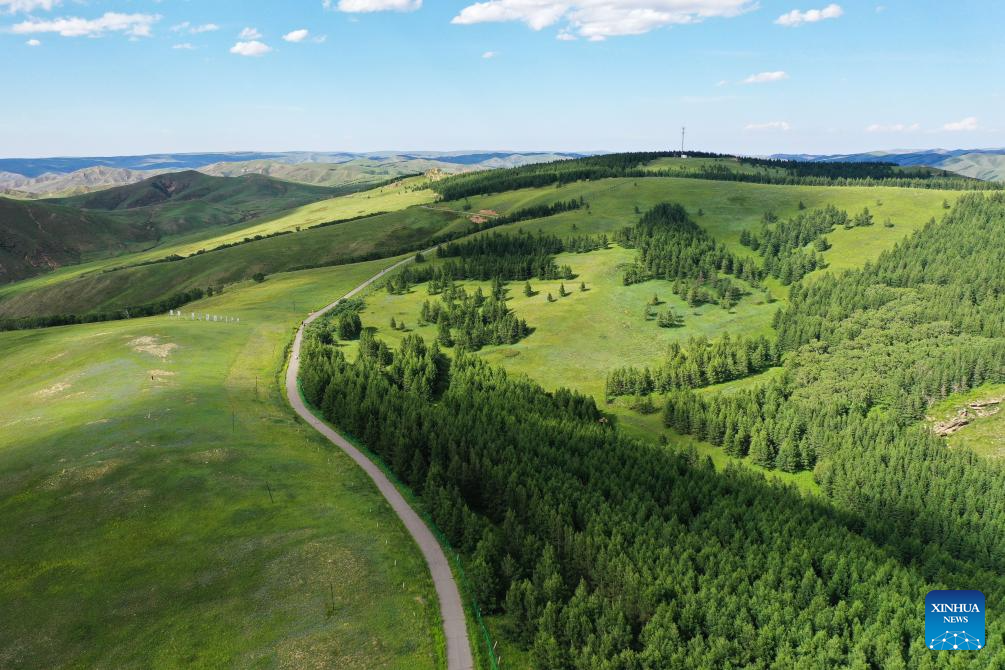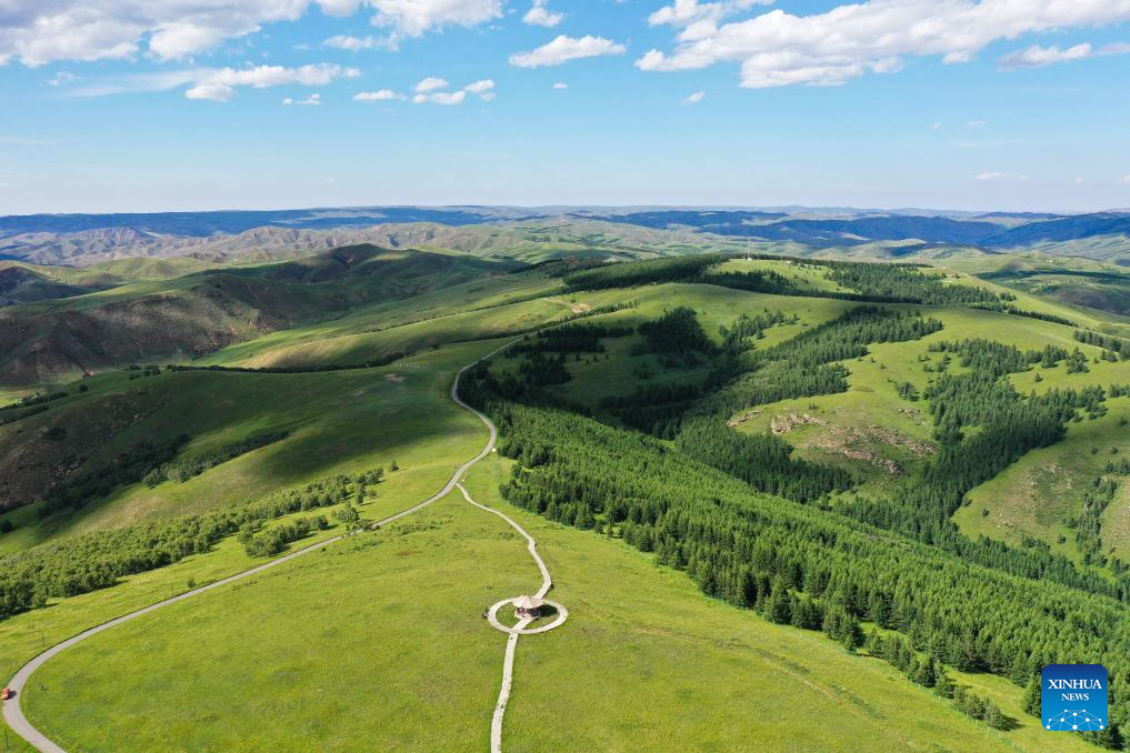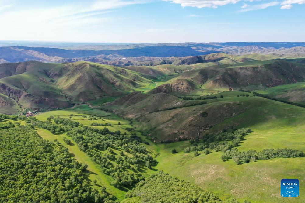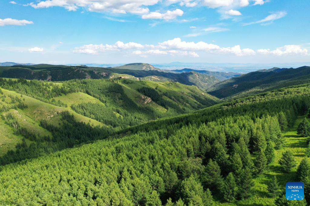An aerial drone photo taken on July 4, 2024 shows the scenery of Daqingshan National Nature Reserve in Hohhot, north China's Inner Mongolia Autonomous Region. (Xinhua/Li Zhipeng)