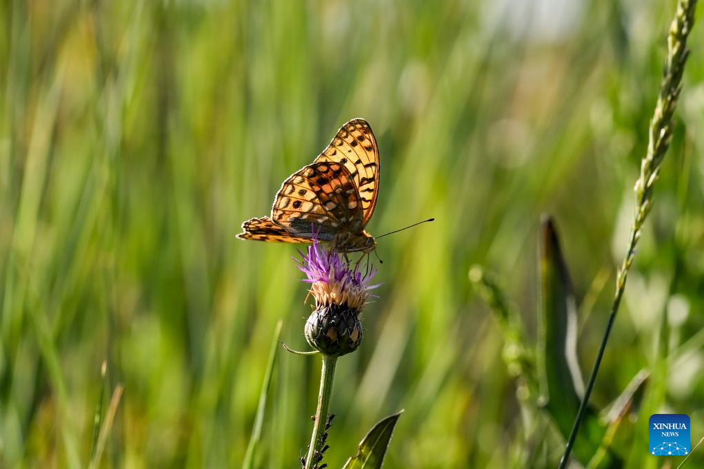 A butterfly is pictured at Daqingshan National Nature Reserve in Hohhot, north China's Inner Mongolia Autonomous Region, July 4, 2024. (Xinhua/Li Zhipeng)