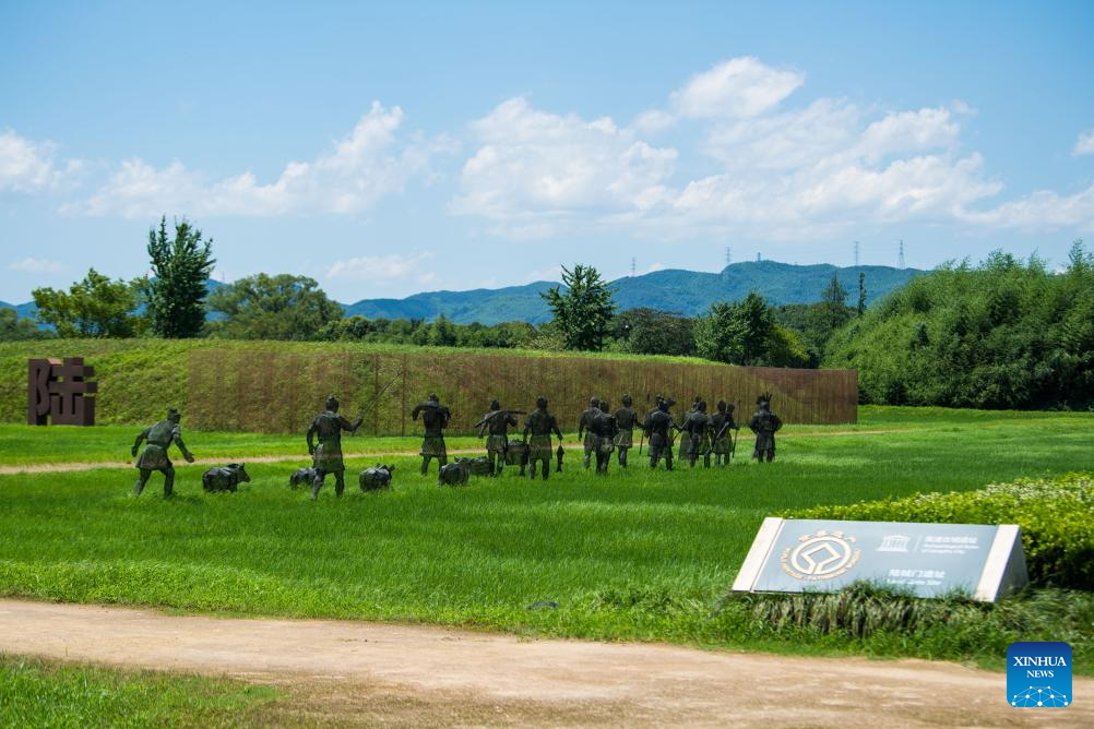 This photo taken on July 4, 2024 shows the Chizhongsi Granary Site at the Archaeological Ruins of Liangzhu City park in Hangzhou, capital city of east China's Zhejiang Province. The Archaeological Ruins of Liangzhu City, located in east China's Zhejiang Province, have gained worldwide recognition as bearing testimony to the existence of at least 5,000 years of Chinese civilization. This year marks the 5th anniversary of its inscription on the World Heritage List as a cultural site. (Xinhua/Jiang Han)