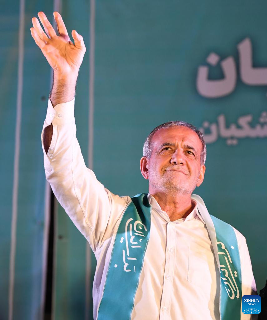 TEHRAN, June 6 (Xinhua) -- Reformist candidate, former Health Minister Masoud Pezeshkian on Saturday won the 14th presidential election in Iran, getting 16,384,402 of the total 30,573,931 votes in the runoff, Iran's Election Headquarters Spokesperson Mohsen Eslami announced, adding the turnout in the second round stands at 49.8 percent.?