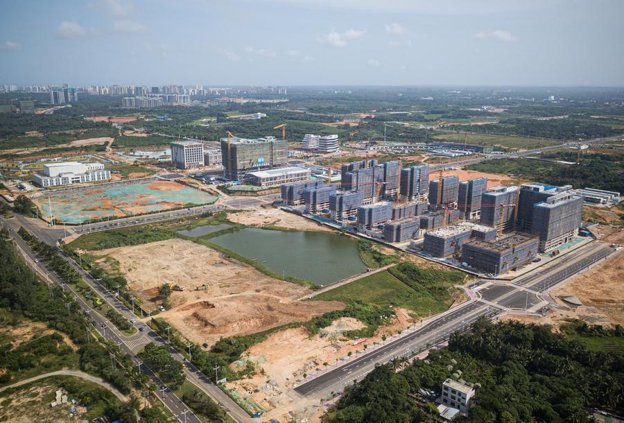 An aerial drone photo taken on July 1, 2024 shows a view of Wenchang International Aerospace City under construction in Wenchang, south China's Hainan Province. (Xinhua/Pu Xiaoxu)