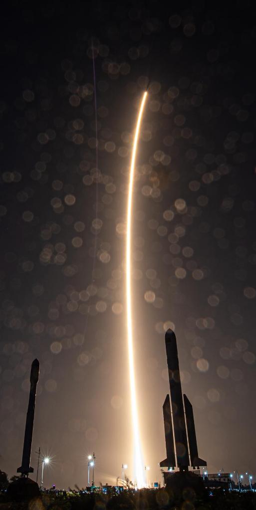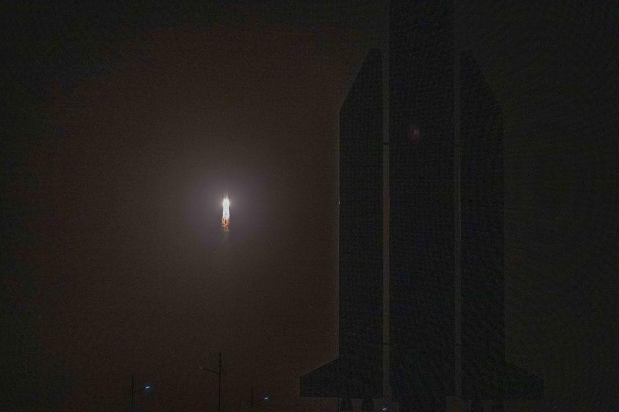 This long-exposure photo shows a modified version of the Long March-7 carrier rocket carrying the Zhongxing-3A satellite blasting off from the Wenchang Space Launch Site on the coast of southern island province of Hainan, June 29, 2024. (Xinhua/Pu Xiaoxu)