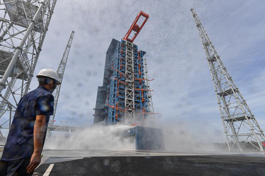 This photo taken on June 30, 2024 shows a scene during a rocket launch simulation rehearsal at a commercial spacecraft launch site in south China's Hainan Province. (Xinhua/Pu Xiaoxu)