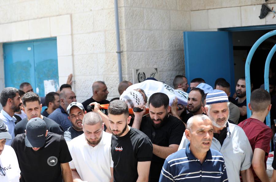 People carry the body of a victim killed in an Israeli attack in the northern West Bank city of Jenin, on July 5, 2024. (Photo by Ayman Nobani/Xinhua)