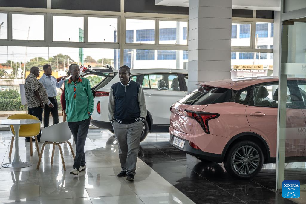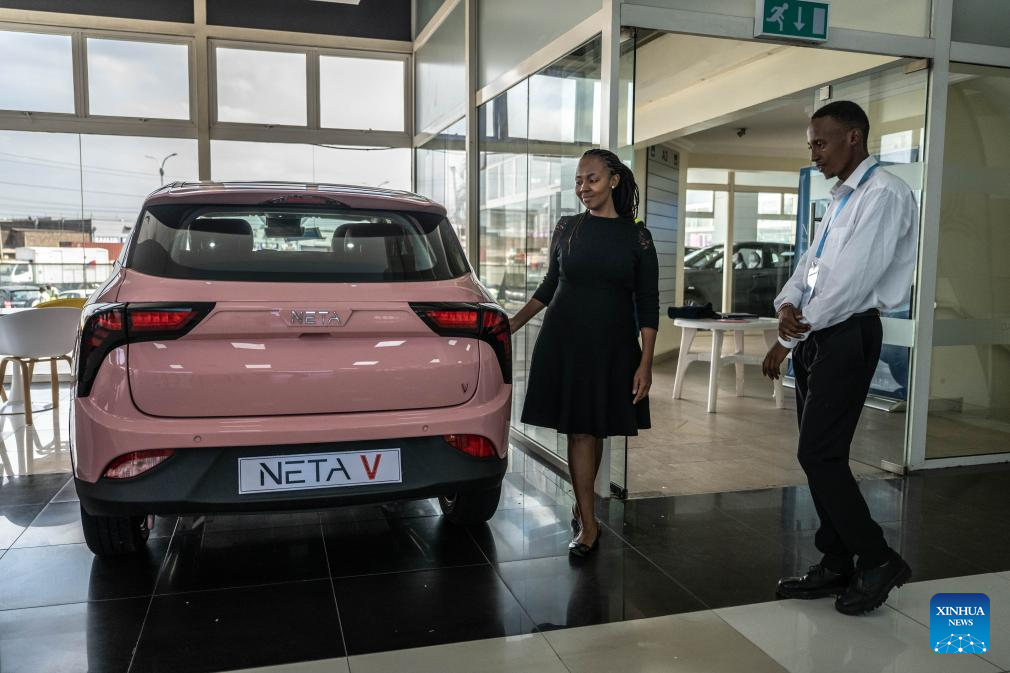 Customers visit a store of Chinese automotive brand Neta in Nairobi, Kenya, July 5, 2024. Chinese automotive brand Neta announced its entry into the Kenyan market on June 26, 2024. (Xinhua/Wang Guansen)
