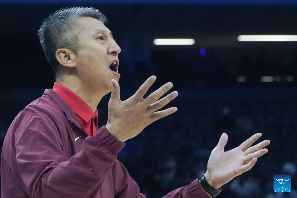 China's coach Guo Shiqiang reacts during the match between China and Sacramento Kings 1 at the 2024 California Classic NBA Summer League at the Golden 1 center in Sacramento, the United States, July 6, 2024. (Xinhua/Wu Xiaoling)