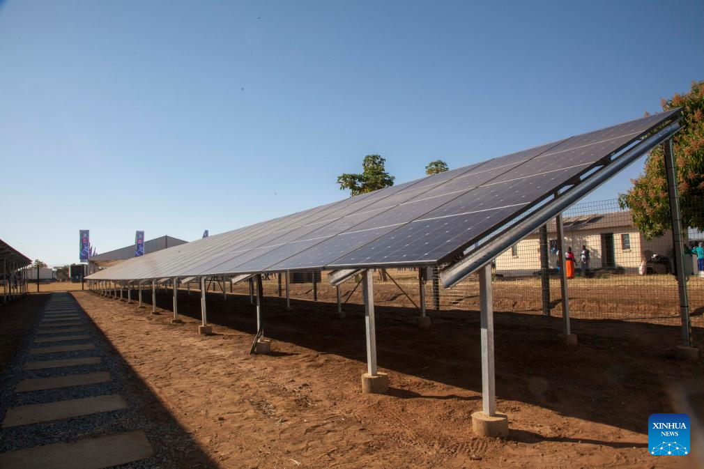 This photo taken on July 5, 2024 shows solar panels at a mini-solar plant as part of a smart village project sponsored by Chinese firm Huawei Technologies in Namwala, Zambia.(Photo by Martin Mbangweta/Xinhua)