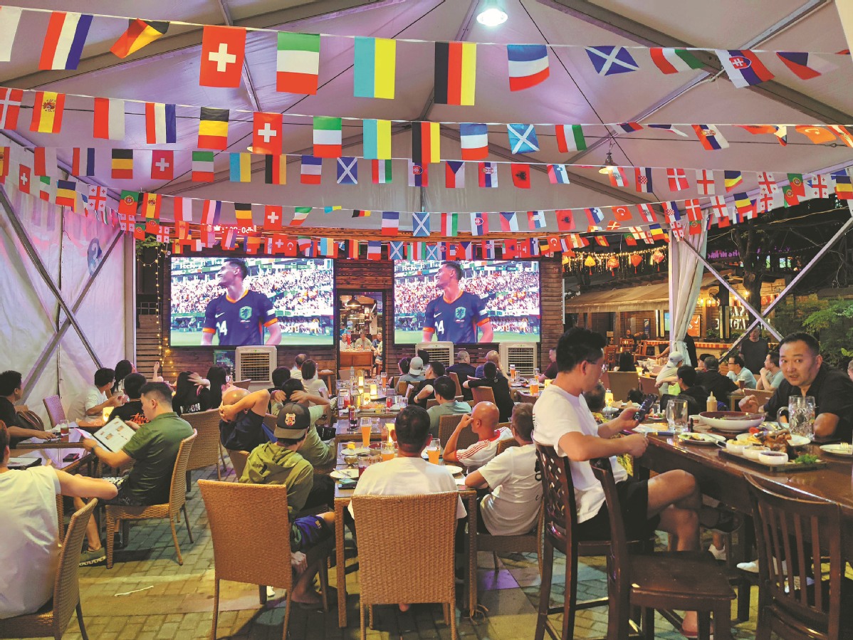 People watch a UEFA Euro 2024 game at a restaurant in Shanghai in June. (PHOTO/CHINA DAILY)