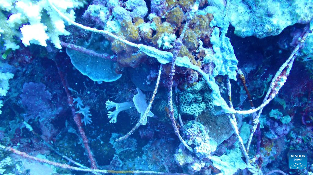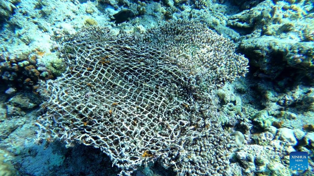 This photo shows the fishing nets on the seabed in the waters of China's Ren'ai Jiao. (South China Sea Ecological Center and the South China Sea Development Research Institute of China's Ministry of Natural Resources/Handout via Xinhua)