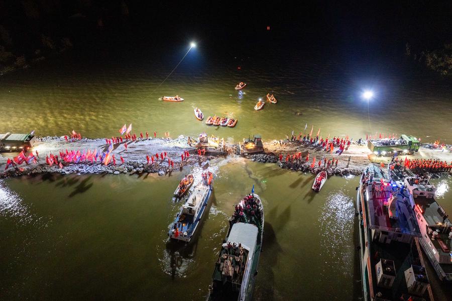 HUARONG, Hunan Province, July 9 (Xinhua) -- Rescue personnel successfully sealed a 226-meter breach in a dike at China's second-largest freshwater lake on Monday, according to local authorities.