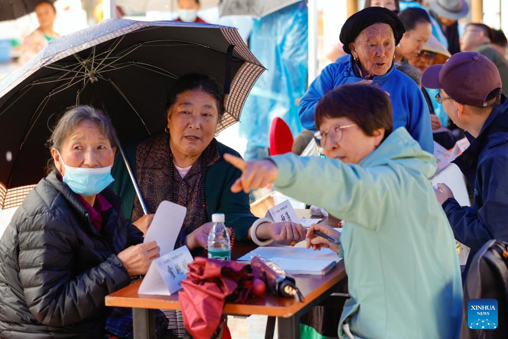 Medical volunteers provide healthcare services for local residents in Kangding, SW China's Sichuan